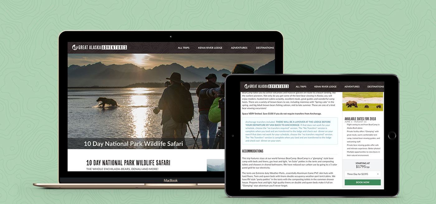 Their existing website, greatalaska.com, was full of information but was very difficult for users to quickly find what they were looking for and book a trip. The design was also very out-of-date and, more importantly, not mobile friendly.
